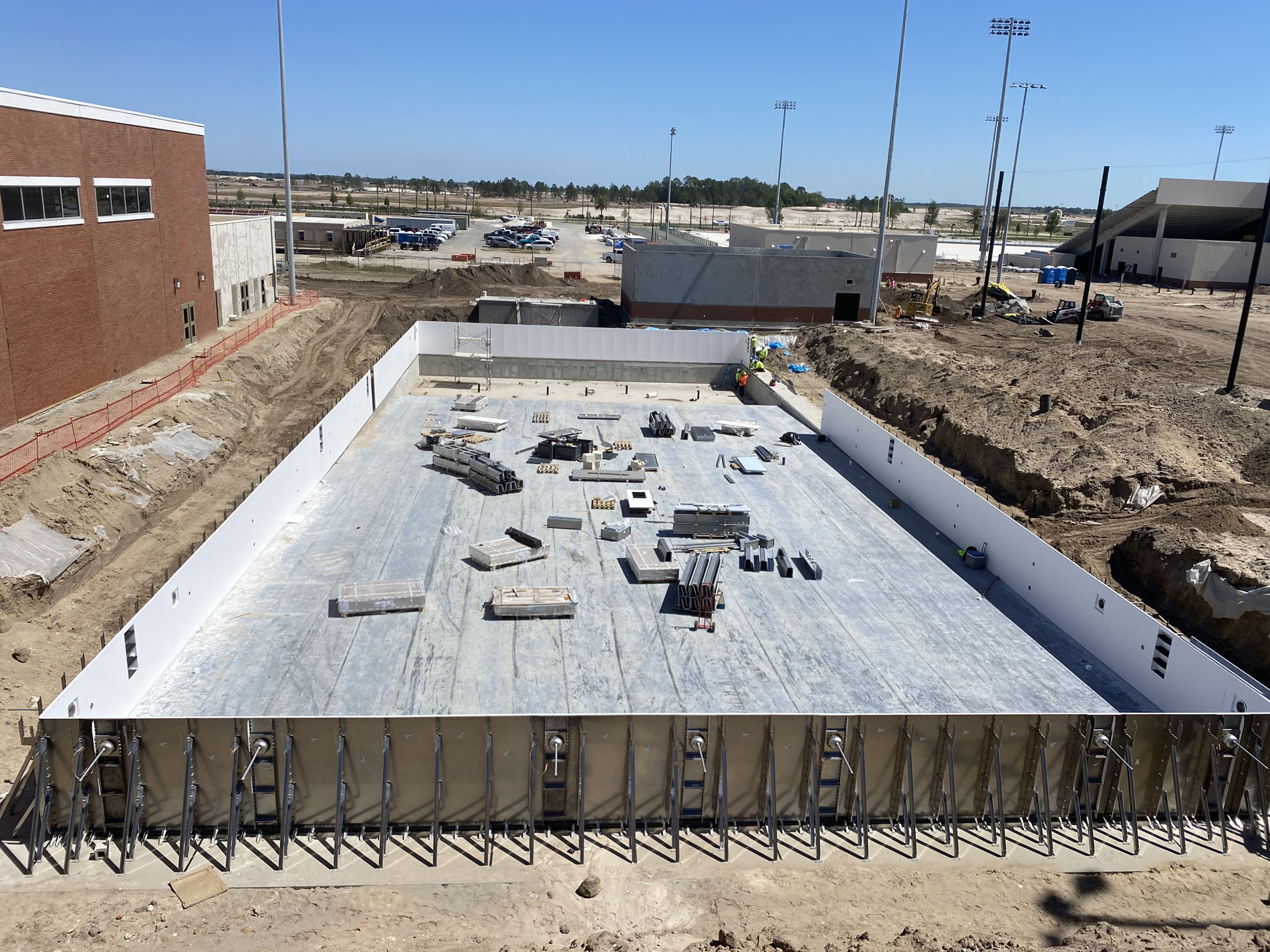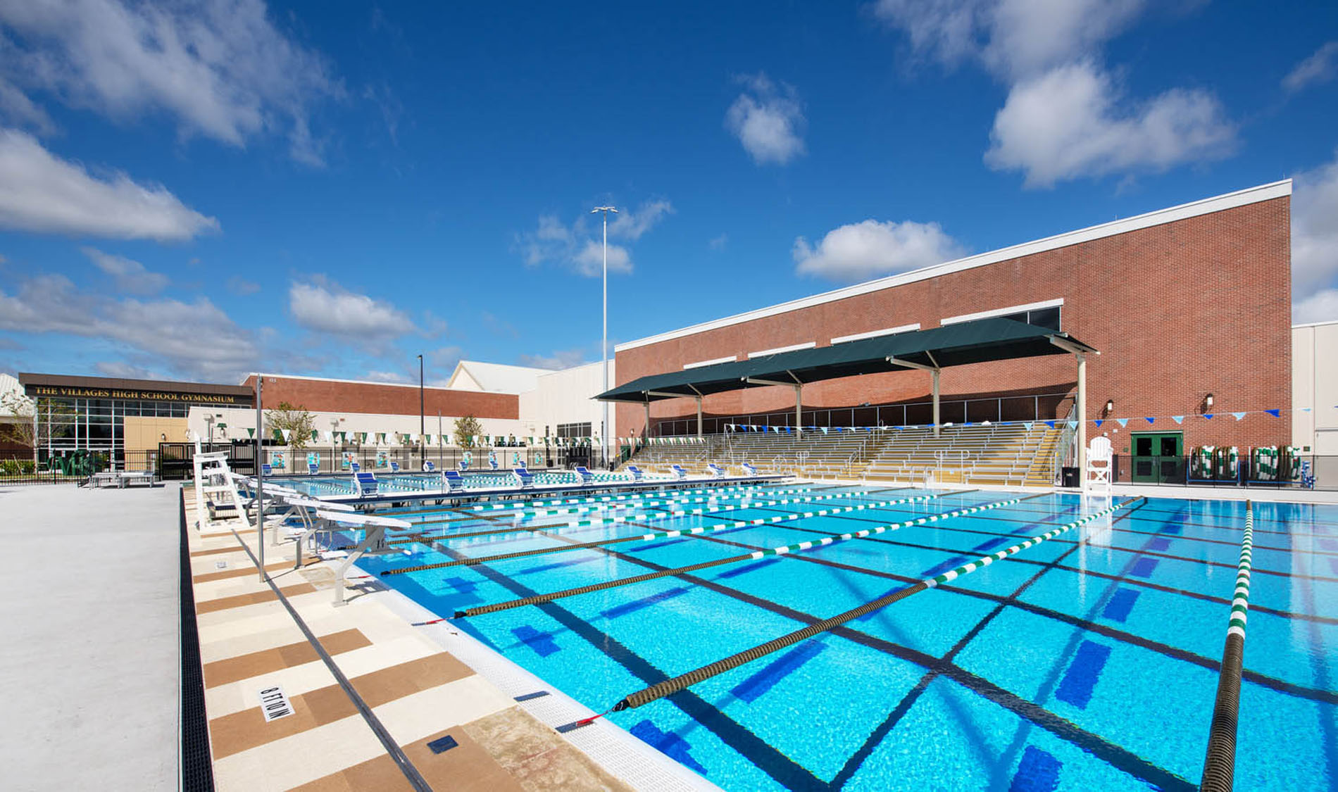 RDC was selected as the specialty pool contractor for The Villages Charter High School’s world-class swimming facility, collaborating with Wharton-Smith as the Construction Manager. This is no ordinary high school pool—designed for the Swimming World Championship in Asia, the Myrtha pool is built to Olympic standards and has been certified to hold world-record swimming times.